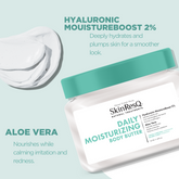 Indulge your skin with the nourishing power of Skin ResQ Daily Moisturizing Body Butter. Formulated with soothing Aloe Vera and a 2% Hyaluronic MoistureBoost, this rich, creamy butter envelops your skin in long-lasting hydration. Aloe Vera calms and revitalizes, while Hyaluronic Acid locks in moisture, ensuring your skin feels soft, smooth, and deeply hydrated throughout the day.